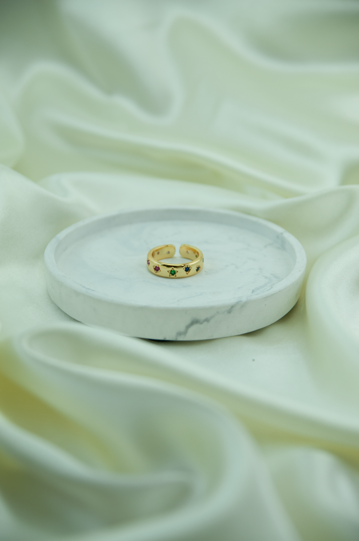 Üzerindeki çoklu renkli taşlarla canlı ve hareketli bir görünüm sunan, tarzına renk katmak isteyenler için ideal çelik yüzük.