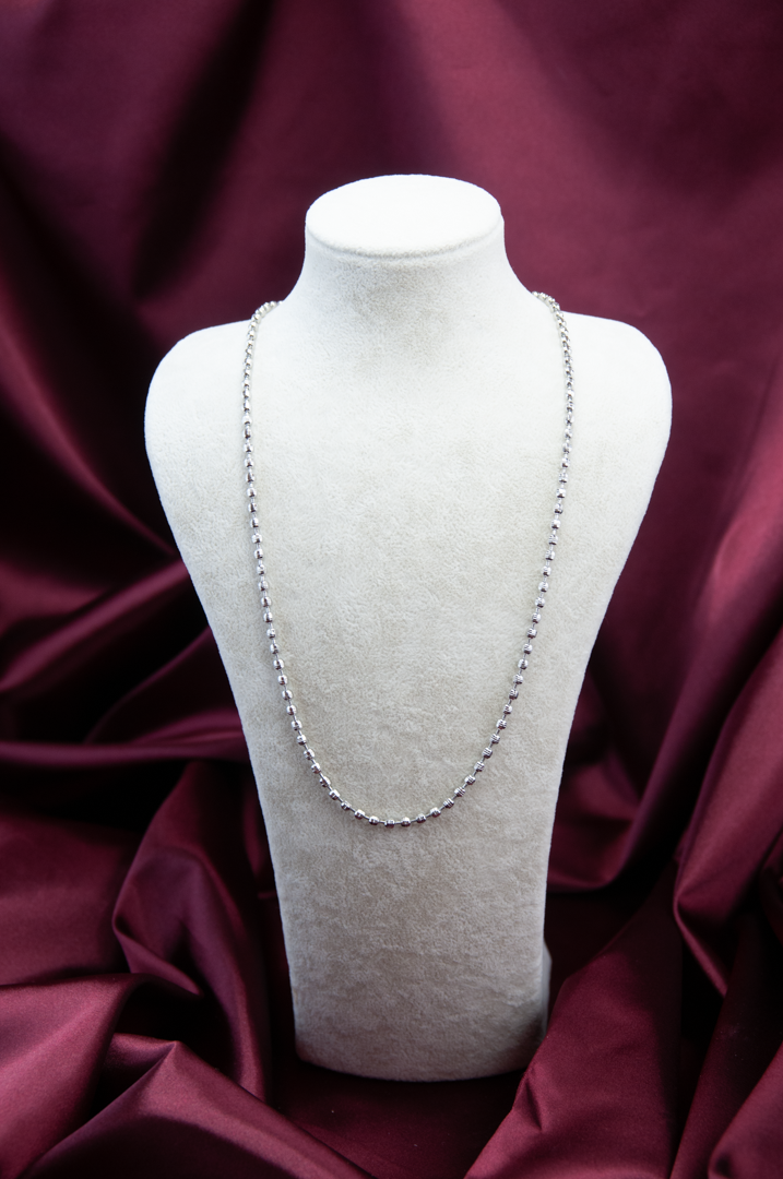 Her dönem popülerliğini koruyan minimalist bir ikon: Gümüş tonlu klasik top zincir kolye. Parlak ve pürüzsüz yüzeyiyle dikkat çeken bu parça, “az çoktur” felsefesini benimseyenler için lüks bir dokunuş sunuyor.