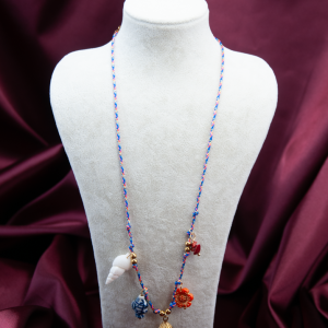 Zengin detayları ve sofistike formuyla öne çıkan bu kolye, klasik takı anlayışını modern bir estetikle harmanlıyor. Boyun hattından aşağıya doğru zarifçe süzülen Y-tasarımı, üzerindeki her bir sembolle kendine has bir hikaye anlatıyor.
