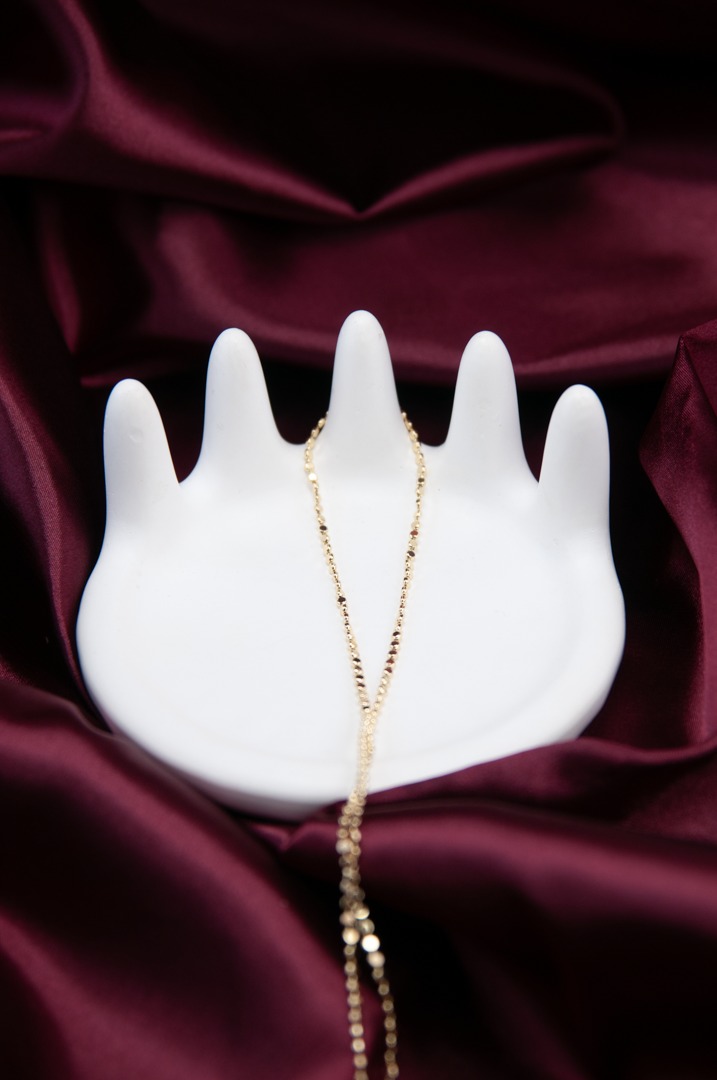 Zincir boyunca sık aralıklarla yerleştirilmiş, yüksek parlaklıkta gold pullardan oluşan bu şahmeran, bileğinizde ve elinizin üzerinde lüks bir doku ve ışıltı etkisi yaratır. Görünümü zenginleştiren parlaklığı sayesinde sade kıyafetlerinize anında iddialı bir hava katmak için mükemmeldir.